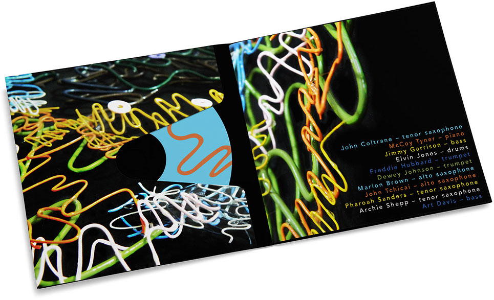 A redesign of John Coltrane’s album Ascension, this was a project for Floyd Hughes’ Visual Communication class. The portrait of Coltrane was created out of wire bent into sound waves that were generated by running Ascension through a spectrum analyzer. In addition to being used in the album art, the portrait was also placed on t-shirts.