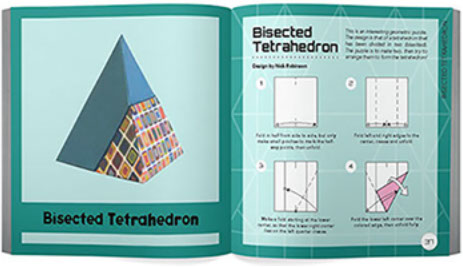 Completed during an internship with Coral Communications and Design/Hourglass Press, Geometric Origami is an origami kit by Nick Robinson that includes a 64-page book with instructions for origami novices and 80 pieces of origami paper—four envelopes with 20 sheets in each. I worked on the overall design of the kit, completing the book layout and editing the patterned papers. I also took all the photographs included in the kit, after folding each piece myself.